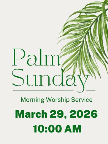 Join us for Morning Worship on Palm Sunday March 29 10:00 AM